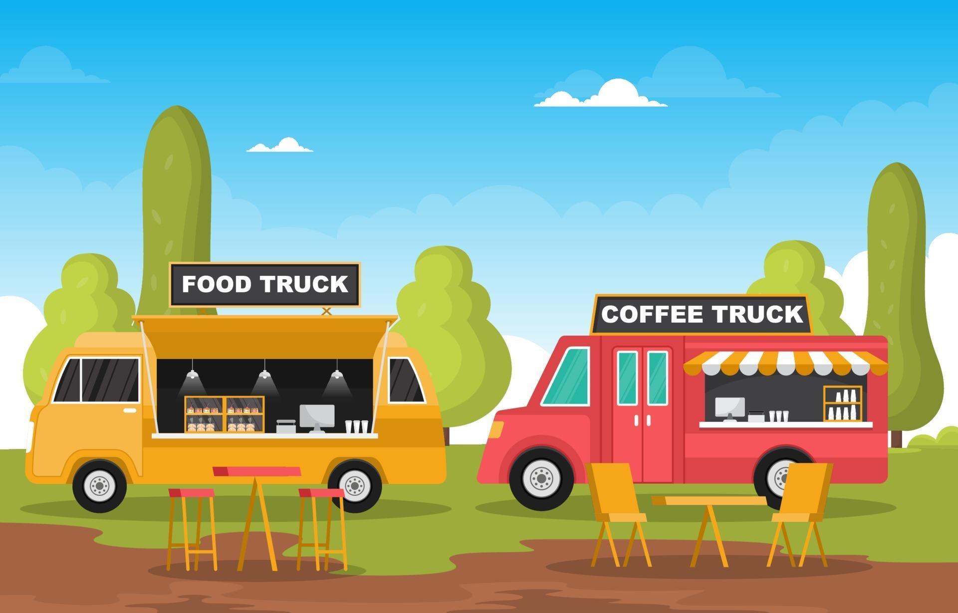 Food Trucks In Park Illustration 2042066 Vector Art At Vecteezy